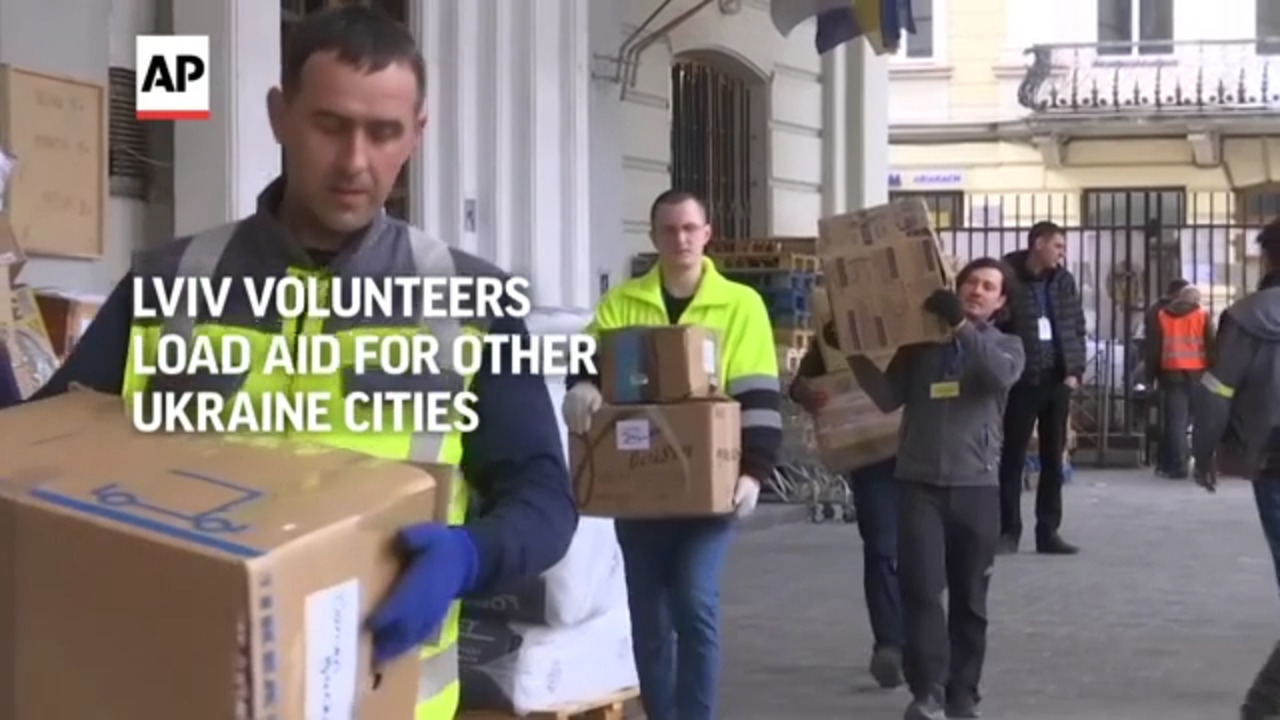 Dozens of volunteers in Lviv's humanitarian aid centre are racing to deliver emergency food supplies to other cities in Ukraine