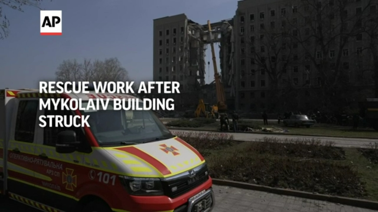 Rescue workers continued working in the debris of Mykolaiv's regional government building on Wednesday, searching for survivors and victims of