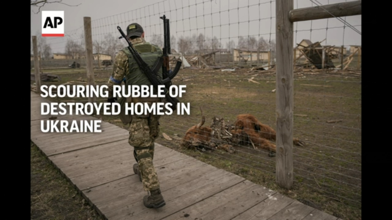 In a village on the outskirts of Kyiv, residents sift through the rubble of their destroyed homes, searching for buried