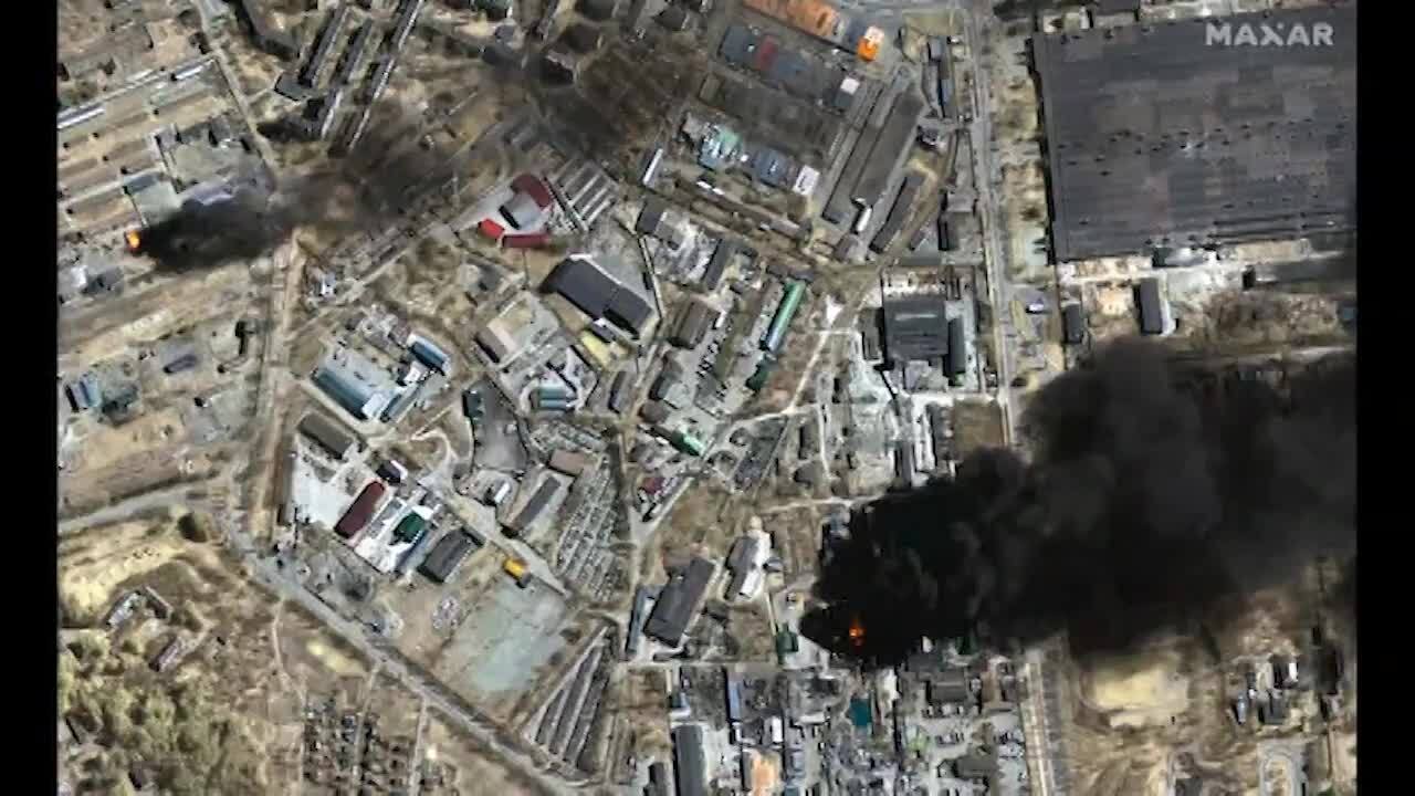 Satellite imagery from the past few days shows continued Russian military activity and destruction in and around several Ukrainian cities