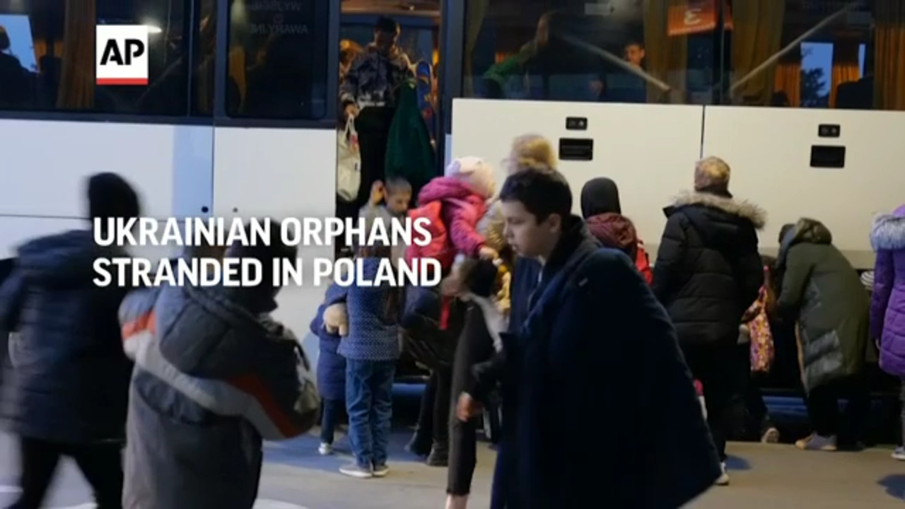Dozens of Ukrainian orphans and their carers were due to fly from Poland to the UK on Monday - but
