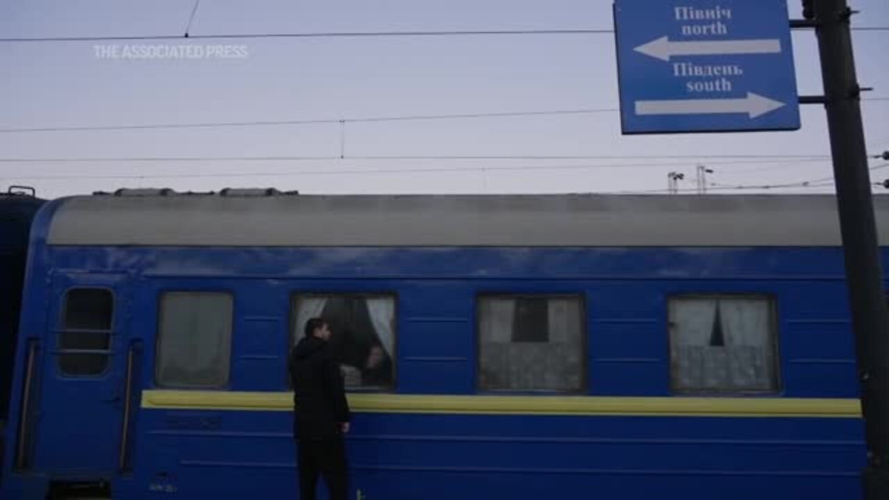Street musicians played under cloudless skies as people fled the the Ukrainian seaside city of Odesa on Tuesday, fearful of