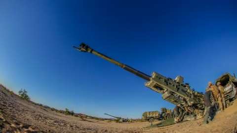 Syrian rebels launch attack against regime fighting position with huge cannons destroying their target.