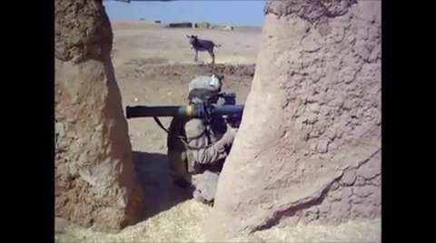 Video of a U.S. Marine element under fire by a two-man insurgent machine gun team calls in field artillery in
