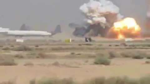 A Boeing 727 taxis past some mortar rounds as they explode. Anyone know where this is?