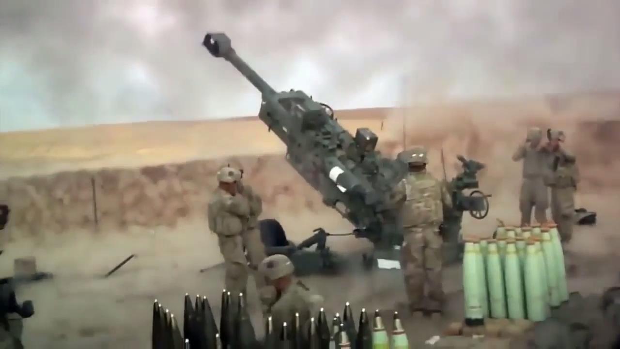 American soldiers bomb ISIS using a 155 mm Howitzer M777.