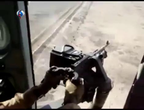 This video contains two clips: 1) The Iraqi Air Force scores a direct hit on a heavy machine gun mounted