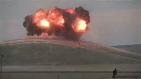 Hashd al-Sha'abi warriors detonate (at a distance) a Daash truck bomb near Fallujah, Iraq.