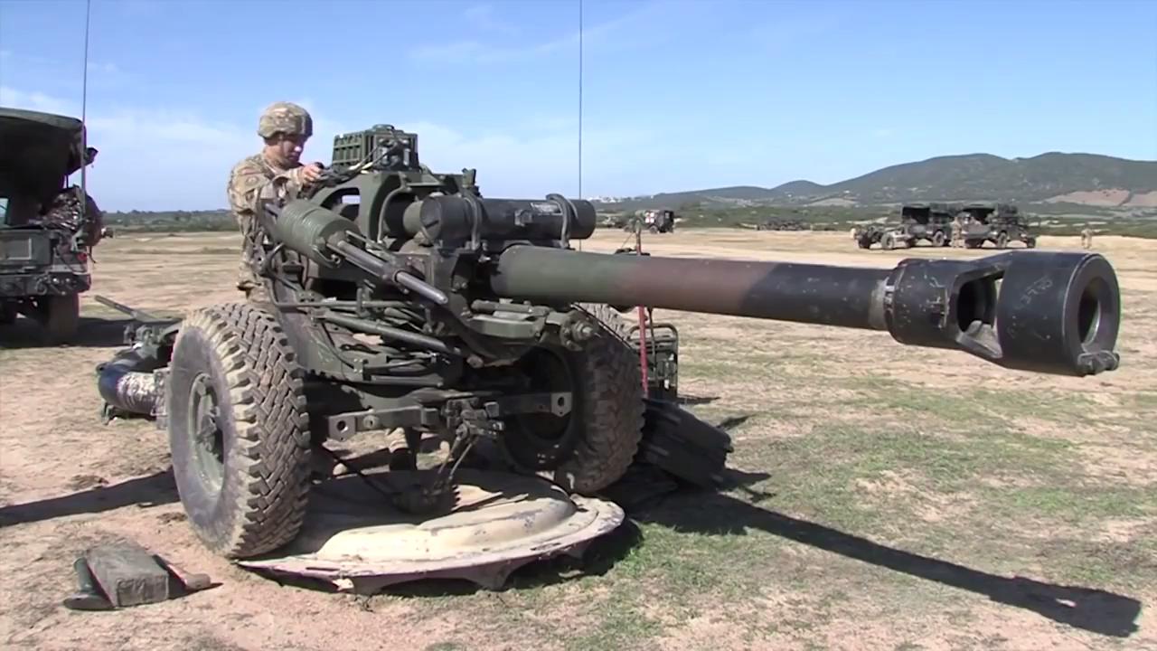 U.S. paratroopers shoot the powerful US M119 105mm howitzer during large training exercise.