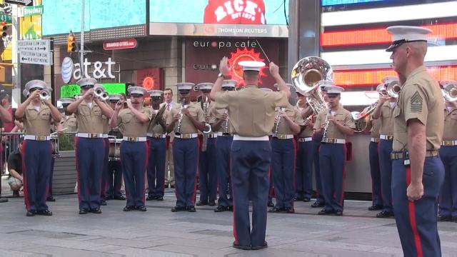 Roughly 500 current and former Marines stand in formation at Times Square in New York for the U.S. Marine Corps