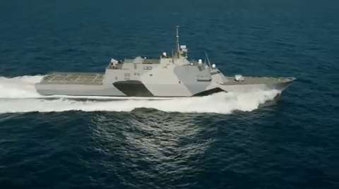 USS Freedom (LCS 1) undergoes testing and preparations off the coast of San Diego prior to its deployment to Southeast