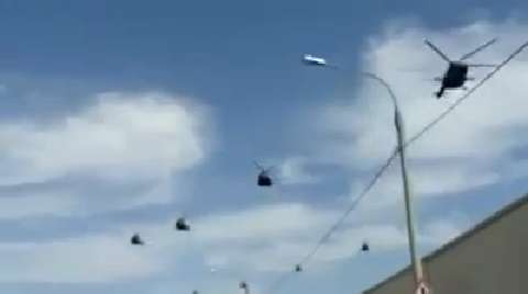 A swarm of Russian helicopters are filmed flying to Sevastopol on the Crimean Peninsula causing the Ukraine to accuse Russia