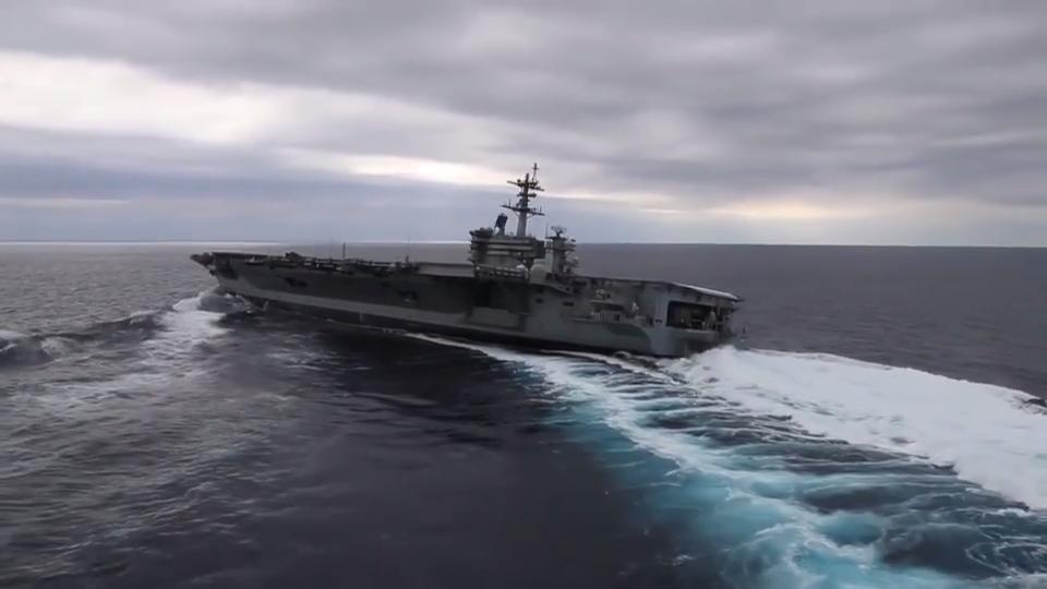USS Ronald Reagan conducts a burial at sea ceremony for a World War 2 veteran as the ship transits the