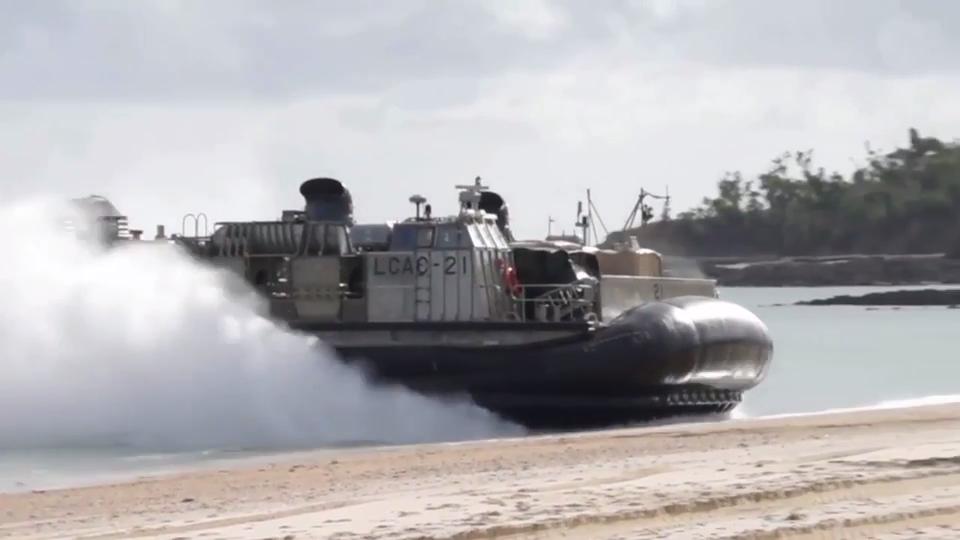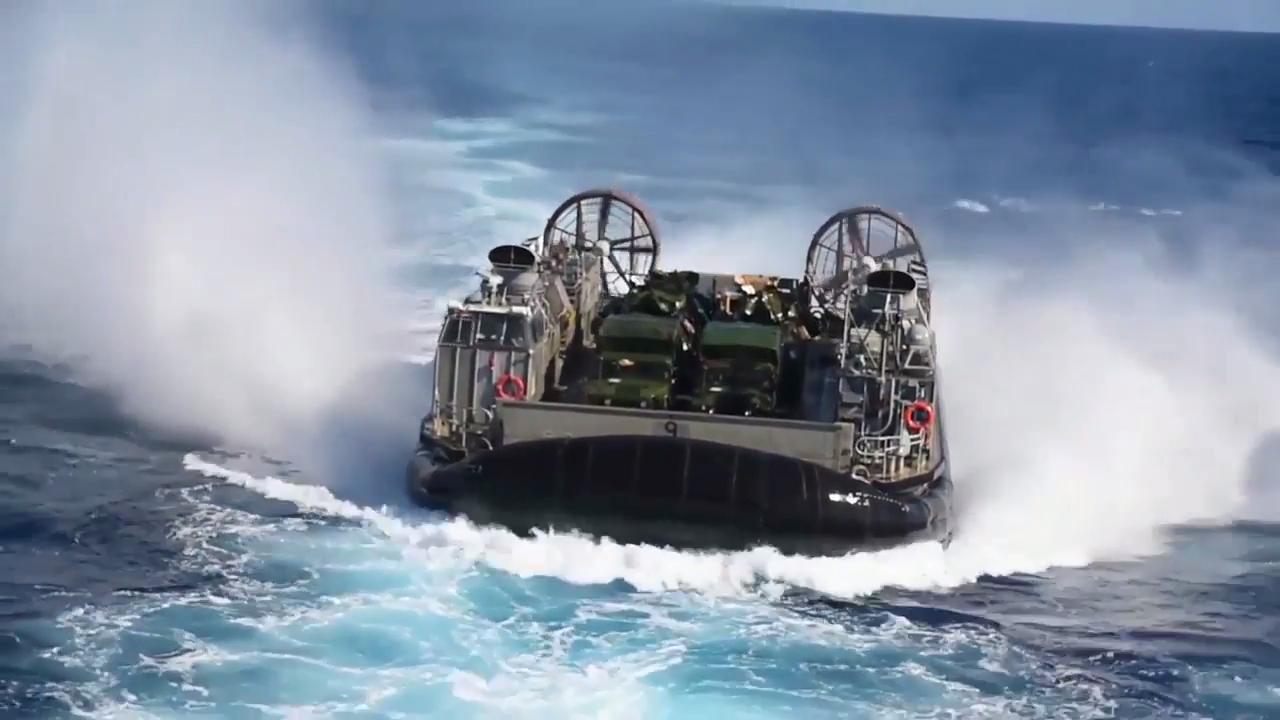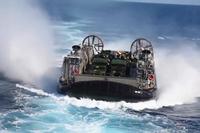 US Navy Landing Craft Air Cushion (LCAC) assigned to Naval Beach Unit (NBU-7), conduct 31st Marine Expeditionary Unit (31-MEU) forces