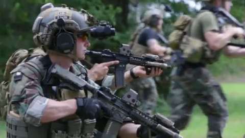 US Soldiers from the 7th Special Forces Group with Chilean Navy Special Forces training in close quarters combat.