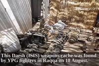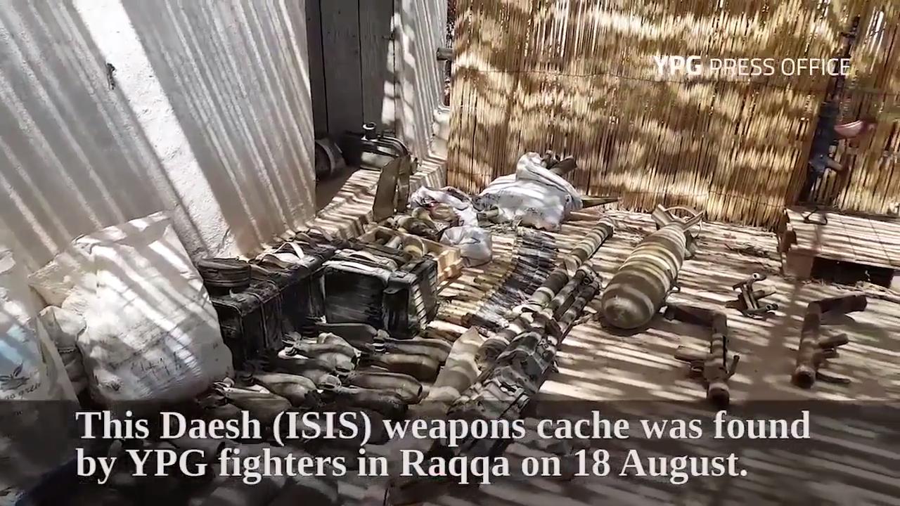 An ISIS weapons cache was found by Kurdish YPG fighters in Raqqa on August 18. The cache included aid sacks