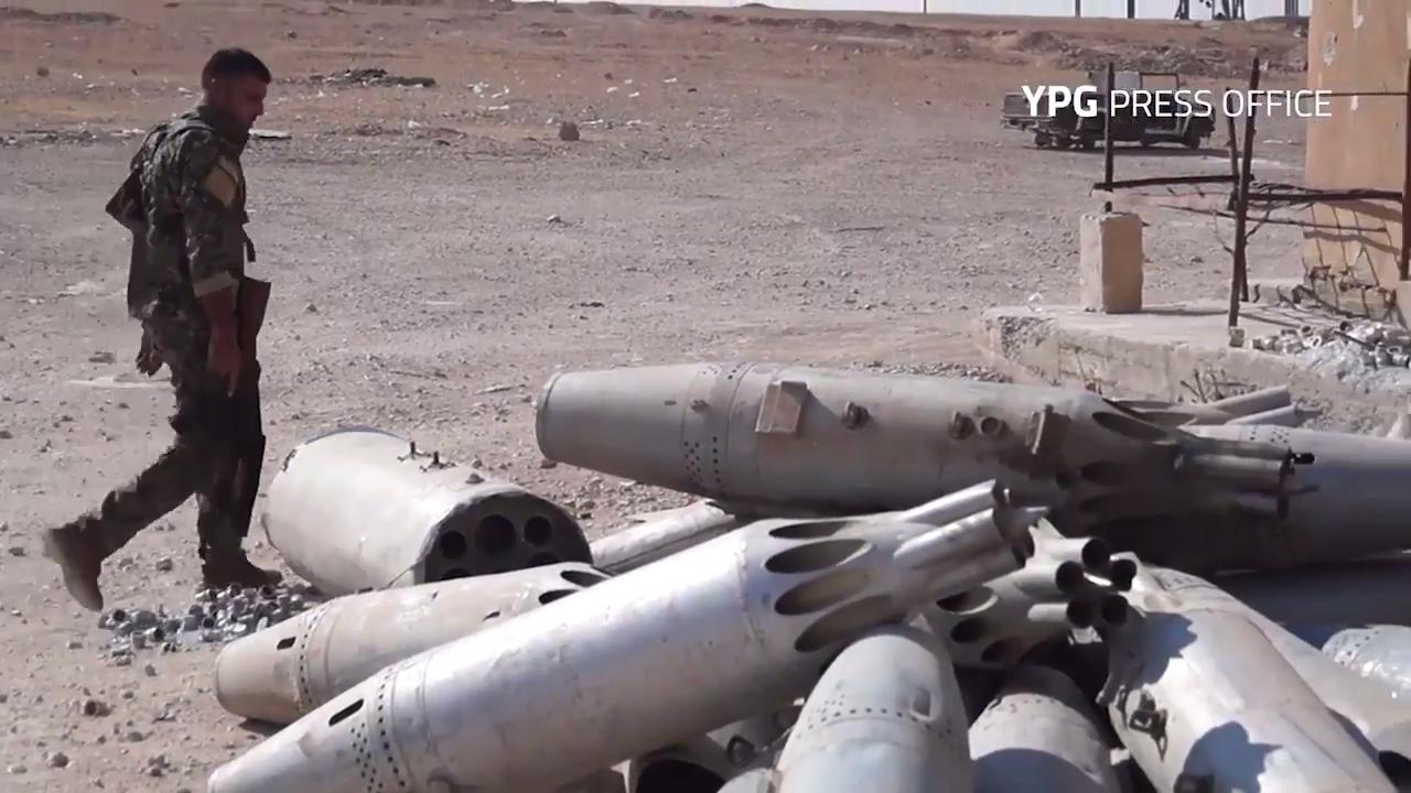 The missiles and hundreds of mortars were found in a munitions factory by YPG fighters, Raqqa, northern Syria, August 24