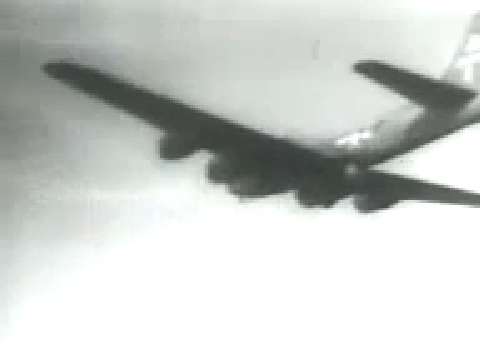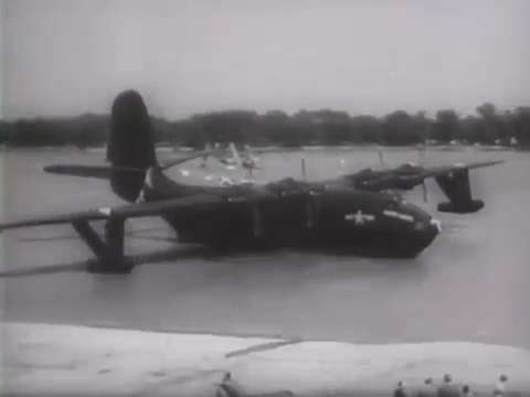 Test flight of Martin JRM Mars flying boat seaplane "Hawaii Mars" with 200-foot wingspan. From US Government produced "United News"