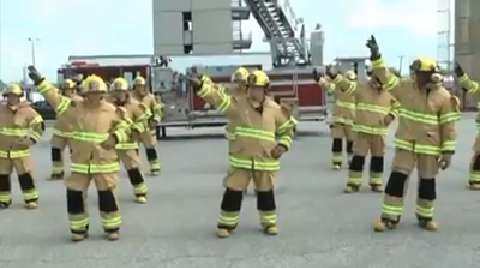 Firefighter flash mob busts out 'Stayin' Alive'. Bravo, gentlemen.
