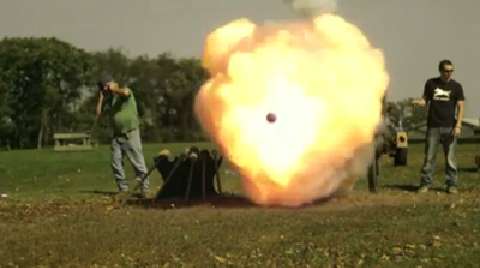 Syrian rebel bomb slingshot in action. 10/15/2012.