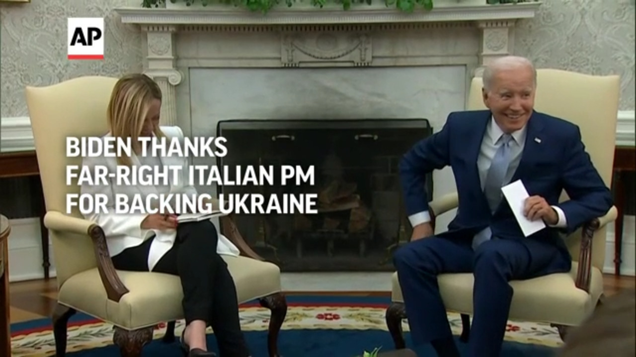 President Joe Biden on Thursday thanked far-right Premier Giorgia Meloni for Italy's steady backing of Ukraine, offering a warm welcome
